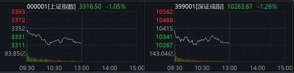 今日早盘,蓝筹股呈现回调态势,上证50与沪深300指数随之下挫,上证指数与深证成指亦跟随调整步伐。然而,小盘成长股表现颇为活跃,个股涨跌互现,且成交量略有放大。
