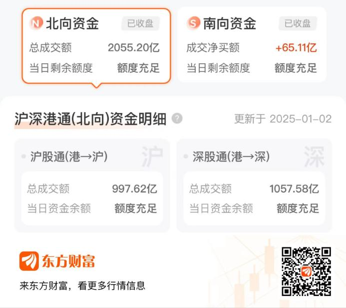 1月2日,A股市场遭遇单边下行趋势,创业板指表现尤为疲弱,沪指更是跌破3300点大关。与此同时,北向资金当日成交额高达2055.20亿元,占据了沪深两市总成交额的14.72%,显示出外资在A股市场中的活跃参与程度。