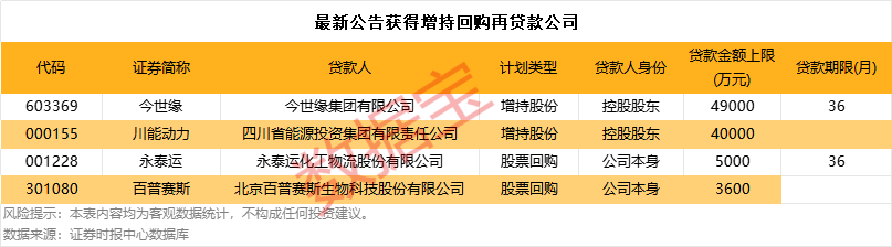 近日,多家公司宣布获得增持回购再贷款。其中,今世缘获得中国银行淮安分行出具的4.9亿元贷款承诺函,用于股票增持;川能动力则获得中国建设银行成都新华支行出具的4亿元贷款承诺书;永泰运拟使用自有资金和中信银行宁波分行提供的最高不超过5000万元的专项贷款资金进行回购;百普赛斯也收到兴业银行北京分行出具的贷款承诺函,拟借款不超过3600万元用于回购。