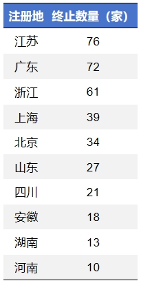 具体到沪深北三交易所,深市共有206家企业终止上市,沪市有154家,北交所则有77家。从地域分布来看,江苏和广东两地的申报企业终止数量最多,分别为76家和72家。此外,浙江、上海、北京等地的企业终止数量也较多。