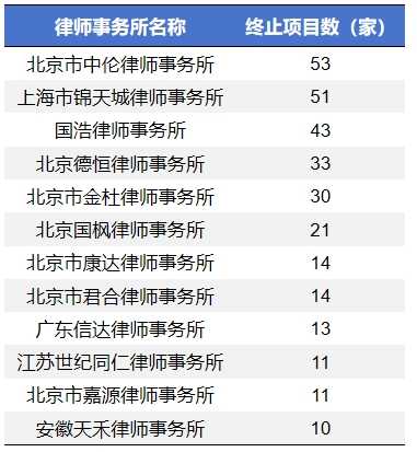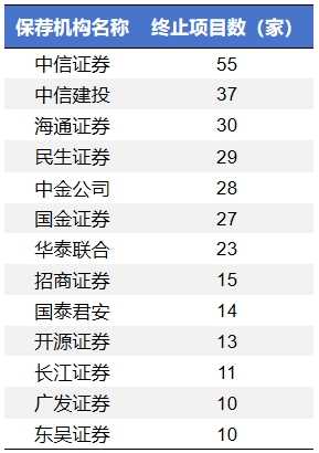 从保荐机构的角度来看,中信证券保荐的项目终止数量最多,达到了55家,中信建投和海通证券分别位列第二和第三位。同时,多家知名律师事务所和会计师事务所也涉及了较多的终止上市项目。