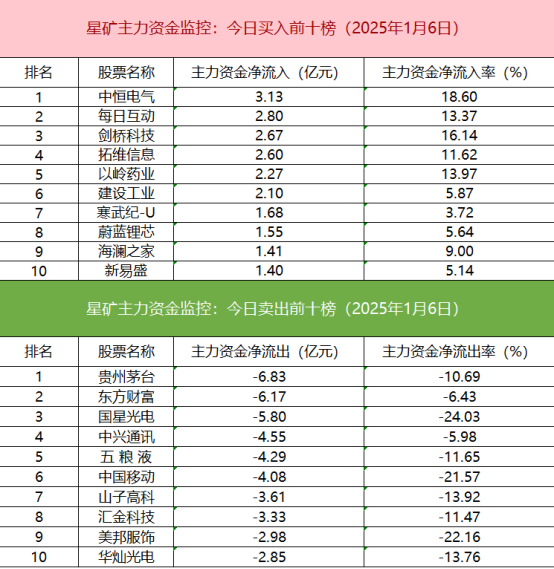 个股方面,中恒电气主力资金净流入最多,而贵州茅台净流出最多。