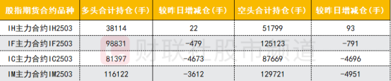 四大期指主力合约中,IH合约多空双方微幅加仓,IF、IC、IM合约则呈现减仓态势,其中IM合约空头减仓尤为显著。