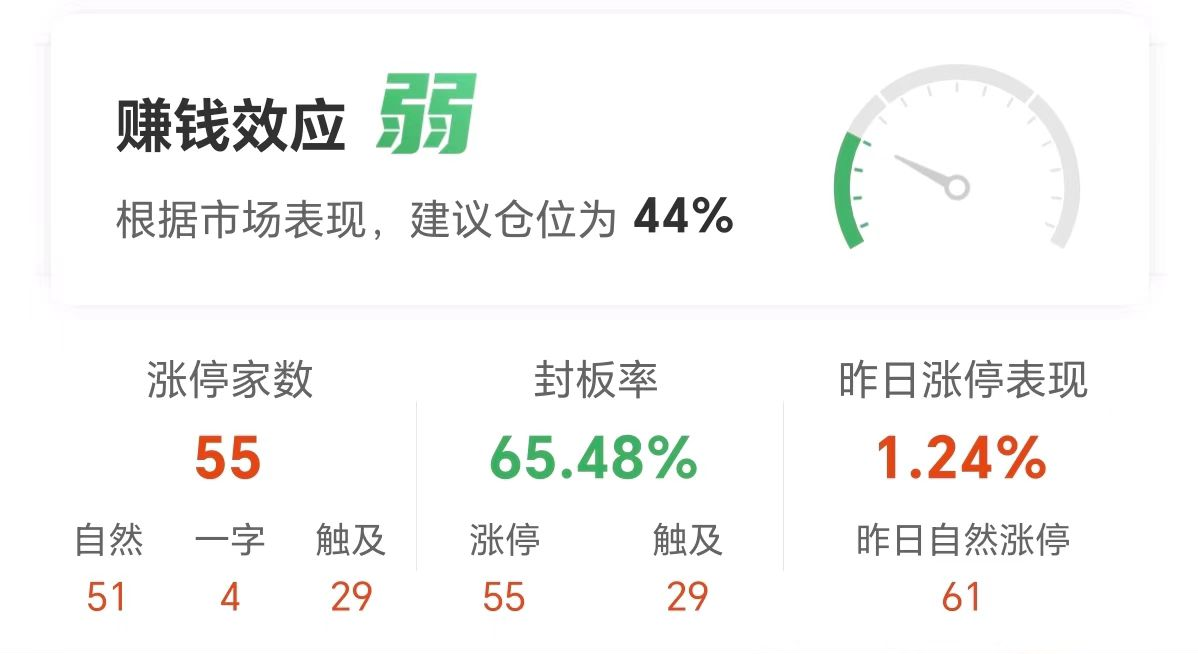 涨停个股数量方面,截至今日收盘,共有55只个股涨停,另有29只个股在盘中一度触及涨停,整体封板率达到65.48%。