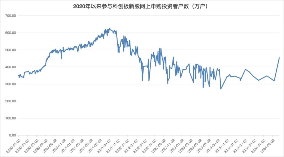 随着近期新股上市后中签收益显著回暖,投资者参与打新的积极性明显提升。证券时报记者通过数据统计发现,创业板新股的网上申购投资者数量相较于9月中旬激增了400万户,科创板新股也迎来了超过100万户的新增打新投资者。这一显著增长不仅反映了市场信心的回升,更预示着投资者对市场的乐观预期。
