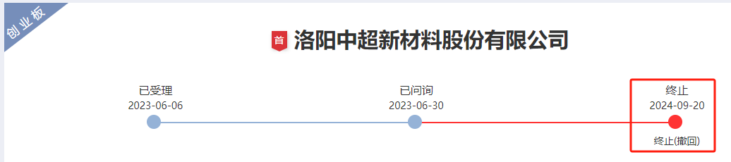 9月20日晚,深交所官网发布消息,洛阳中超新材料股份有限公司(中超股份)及其保荐人海通证券撤回发行上市申请,深交所依据相关规定,决定终止该公司的发行上市审核流程。