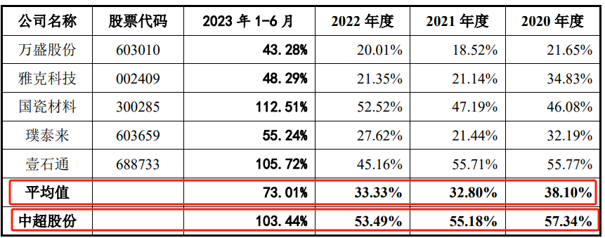 数据显示,2021年至2024年上半年,中超股份应收项目占营业收入的比例分别为57.34%、55.18%、53.49%和103.44%,远高于同行业可比公司平均水平。对此,深交所要求中超股份进行详细说明。