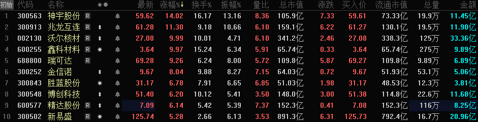 1月20日,A股市场中的铜缆高速连接概念股迎来了开盘大涨的行情。其中,华脉科技竞价即封涨停,瑞可达涨幅超过10%,沃尔核材、中富电路、奕东电子的涨幅也均超过5%,神宇股份、博创科技、显盈科技、鑫科材料等其他相关个股也纷纷跟涨。