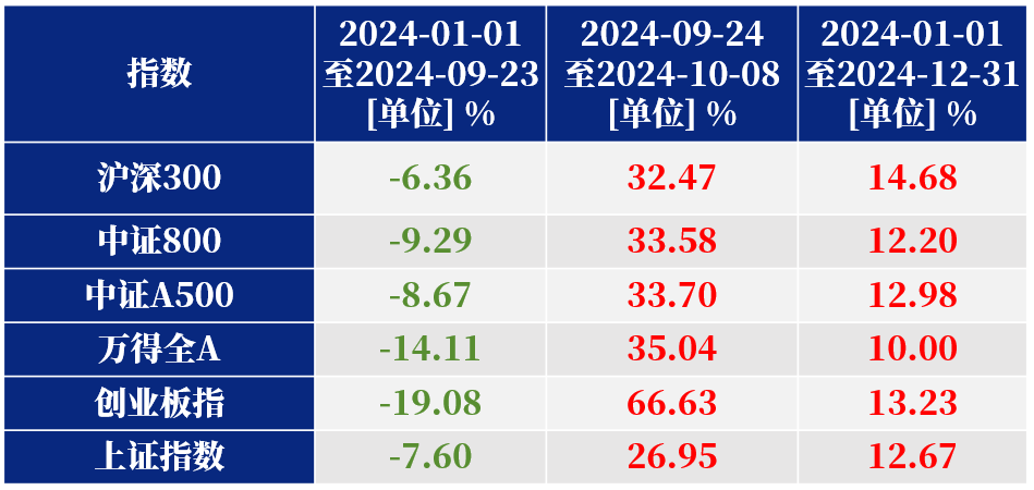 回顾2024年,市场情绪在9月24日之前较为悲观,上证指数一度跌至2635点,成交量也缩减至4800亿。截至2024年9月23日,万得全A指数下跌了14.11%,仅有银行、家电、公用事业三个行业年内实现正收益。然而,随着政策面的回暖,在9月24日至10月8日的6个交易日内,万得全A指数迅速反弹,涨幅达到了35%。这一“V”字反转揭示了一个事实:尽管2024年万得全A指数整体上涨了10%,但其中35%的涨幅是在这6个交易日内实现的。因此,如果投资者在情绪悲观时选择离场,可能会错过后续的大幅上涨。因此,淡化短期波动,关注长期价值,进行逆向布局,或许才是更为明智的选择。