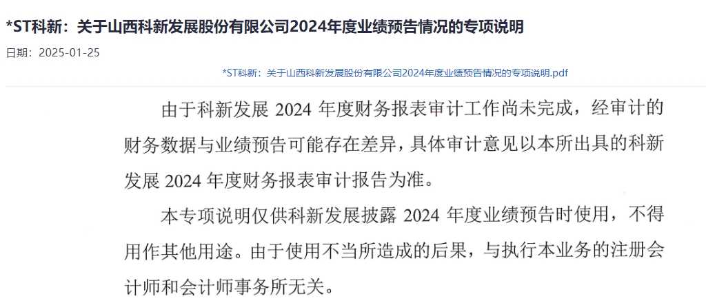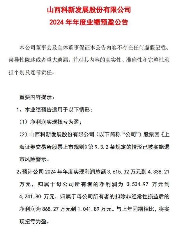 尽管如此,*ST科新仍需提醒投资者,若公司2024年度出现《上海证券交易所股票上市规则》第9.3.7条规定的相关情形,公司股票可能面临被上海证券交易所终止上市的风险。