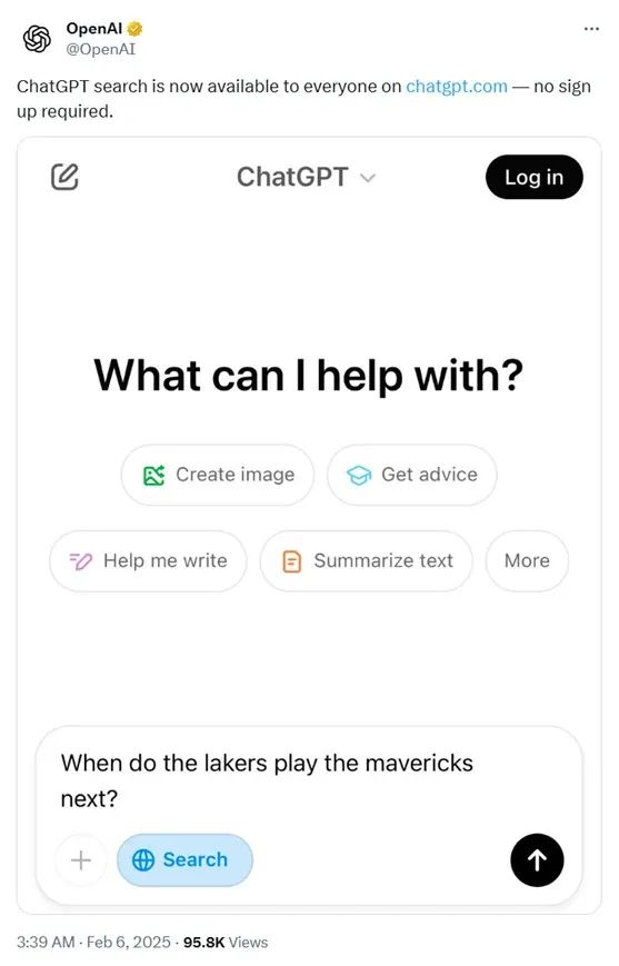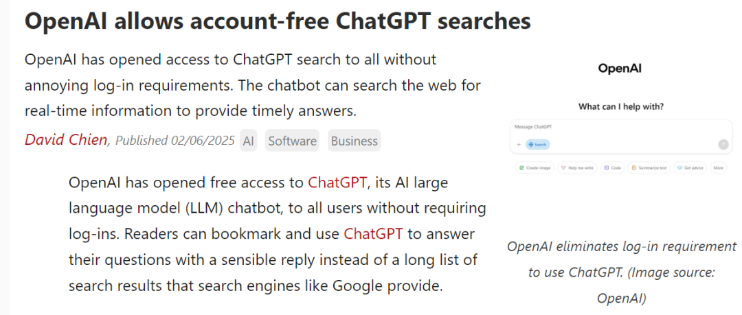 ChatGPT搜索功能全面免费开放,注册门槛为零