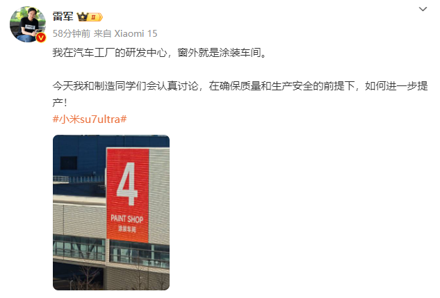 在这条动态中,雷军明确表示,他与制造团队的成员们将围绕如何在确保产品质量和生产安全的基础上,进一步提升生产效率展开深入讨论。这一表态无疑为小米汽车业务的未来发展注入了强心剂,也让外界对于小米汽车的量产进程充满了期待。