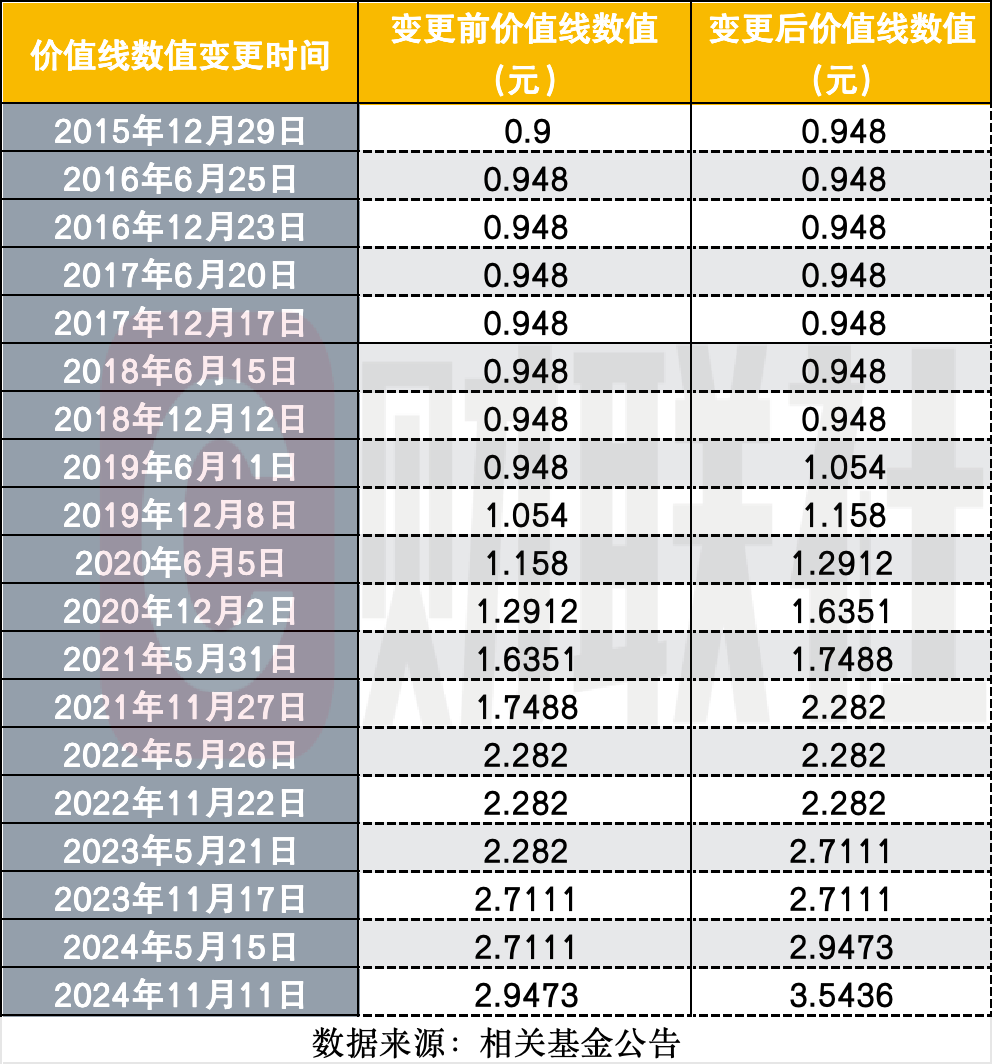 价值线机制在国内公募行业的引入可追溯至2002年,但由于早期净值频繁跌破价值线的现象,该机制并未得到广泛应用。目前,除了东吴新趋势价值线外,博时基金和海富通基金旗下也各有1只产品设置了价值线机制。