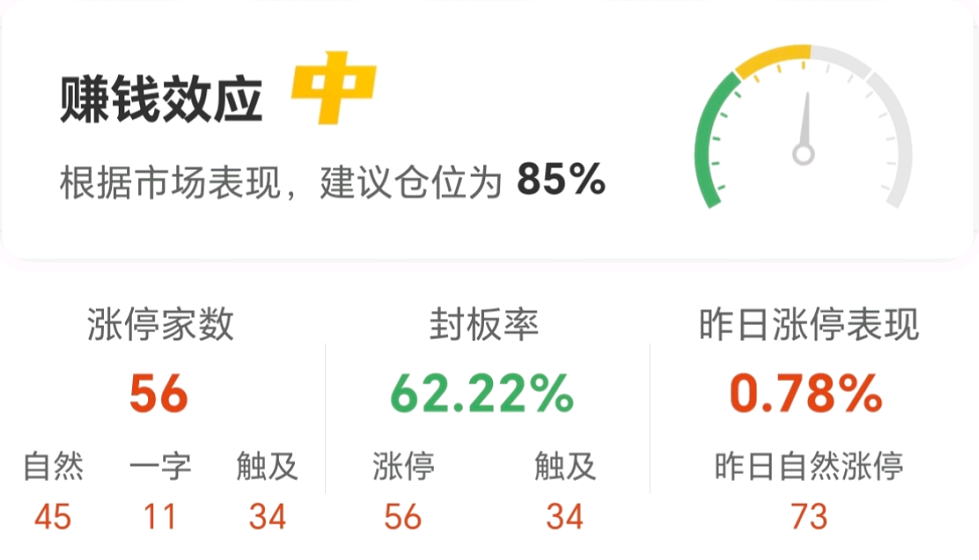 涨停个股数量方面,截至收盘,今日共计56股涨停,另有34只个股盘中一度触及涨停,封板率62.22%。