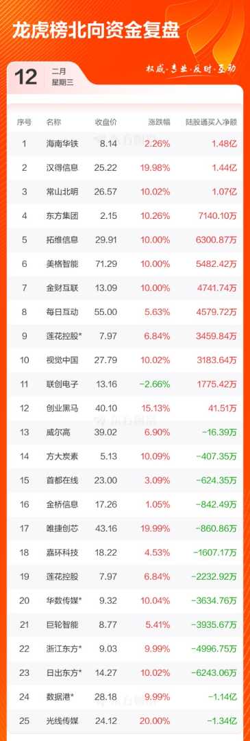 2月12日,两市震荡反弹,创业板指领涨。北向资金当日成交1948.67亿元,占沪深两市总成交额的11.62%。