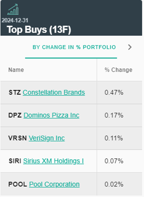 具体来看,伯克希尔去年四季度大幅抛售所持花旗银行和美国银行股份,对两家公司的持股数环比降幅分别约70%、15%。同时,伯克希尔最大手笔买入的个股是酒业公司Constellation Brands,当季新进562万股,加仓达美乐披萨110万股、增幅超八成。