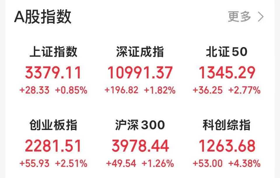今日,A股、H股携手冲高,上证指数刷新年内新高,恒生指数刷新三年新高。科技板块个股呈现爆发式上涨,带动两个市场科创类指数大幅领跑,A股创业板指收涨2.51%,科创50指数收涨5.97%;截至发稿,恒生科技指数涨幅接近6%。