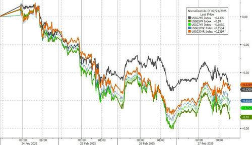 周四公布的经济数据便再度显示,美国通胀预期、消费者信心、成屋销售和初请失业救济人数发出着令人不安的信号。虽然10年期美债收益率隔夜出现了七天来的首次上涨,但仍徘徊在年内低点附近。目前,10年期美债收益率已较1月份4.8%的峰值下跌了约50个基点。