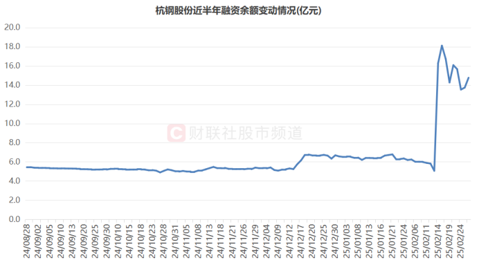 注:杭钢股份近半年融资余额变动情况(截至2月26日数据)