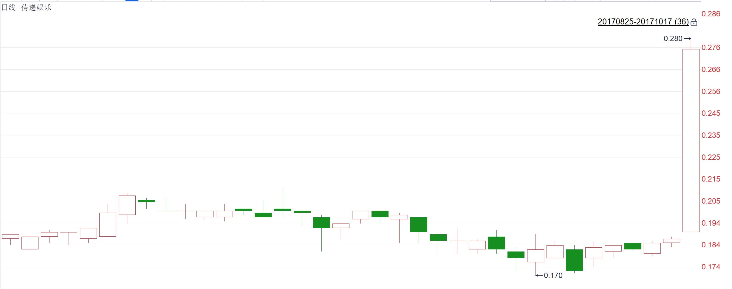 注:传递娱乐在2017年8月25日至10月17日期间的表现