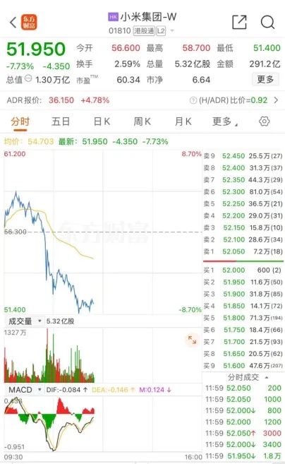 小米集团股价盘中跳水,市值瞬间蒸发近800亿港元
