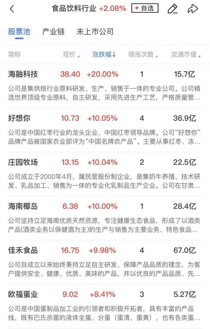 个股方面,今日早盘涨停股47家(不含ST及未开板新股),封板率75%,连板股13家,多只个股实现连板。板块上,大消费股表现强劲,旅游、白酒、食品等板块涨幅居前。庄园牧场、海南椰岛、佳禾食品等涨停。消息面上,近日五部门发布《优化消费环境三年行动方案》,旨在促进消费提质增效。德邦证券指出,餐饮供应链板块业绩承压,但估值水平较低,后续伴随政策促消费,公司业绩有望反弹。
