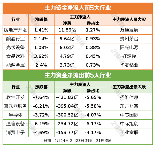 上周A股市场经历了波动,过去一周(2月24日—2月28日),A股三大指数集体收跌。截至2月28日收盘,上证指数报3320.90点,周跌1.72%;深成指报10611.24点,周跌3.46%;创业板指报2170.39点,周跌4.87%。个股表现分化,约32%的个股周内上涨,其中113股周涨幅超过15%,而81股周跌幅超过15%。行业方面,钢铁、房地产、食品饮料、建筑材料等板块涨幅居前;通信、传媒、计算机、电子等行业则跌幅居前。