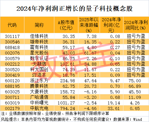 尽管2024年量子科技概念股整体业绩欠佳,但仍有部分股票表现亮眼。据证券时报统计,有14只量子科技概念股净利润同比增长。其中,佳缘科技、雄帝科技等股票净利润扭亏为盈。