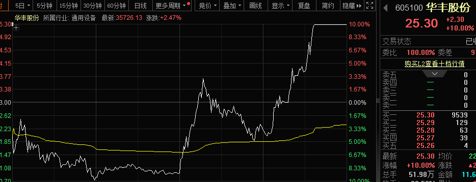 此前连续6个涨停板的华丰股份近日股价走势大逆转。该股昨天收盘前20分钟左右时间从涨停价跳水至跌停,走出天地板行情。今天该股大幅低开后持续震荡,午后开始大幅反弹,最终封死涨停板,完成地天板行情。