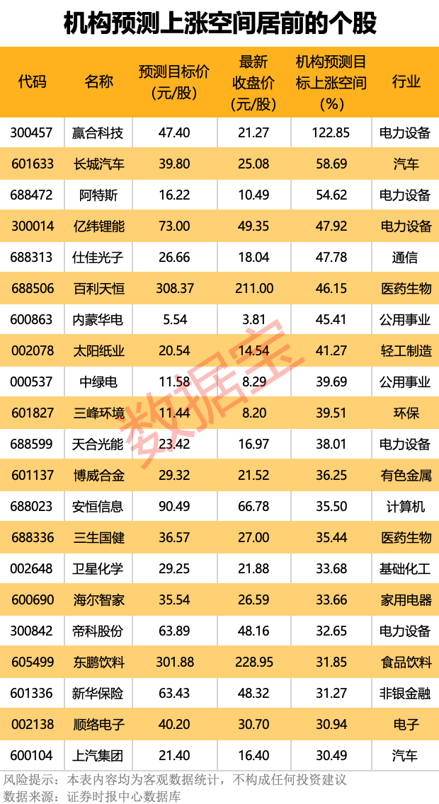 本周还有21股最新收盘价较机构预测目标价上涨空间超30%,其中赢合科技上涨空间超120%。作为固态电池股的代表,赢合科技在叠片工艺设备方面取得显著成果,成熟掌握了固态电池所需的高速叠片工艺技术。天风证券最新评级报告首次授予赢合科技“买入”评级。