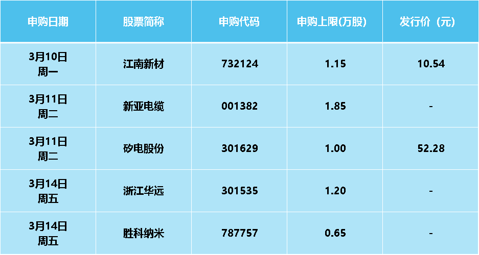本周沪深两市有5只新股申购,涵盖上证主板、科创板、深证主板和创业板。
