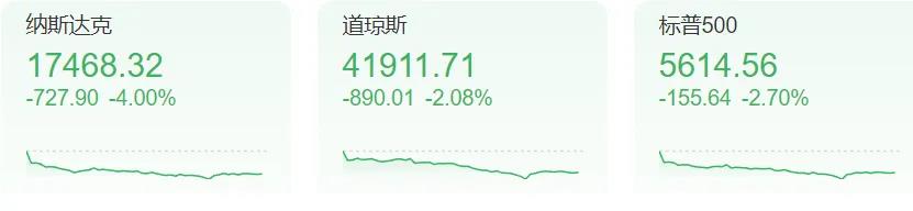 个股普跌,超5000只股票下滑!科技“七巨头”损失惨重,市值合计蒸发逾7500亿美元(约人民币5.5万亿元)。