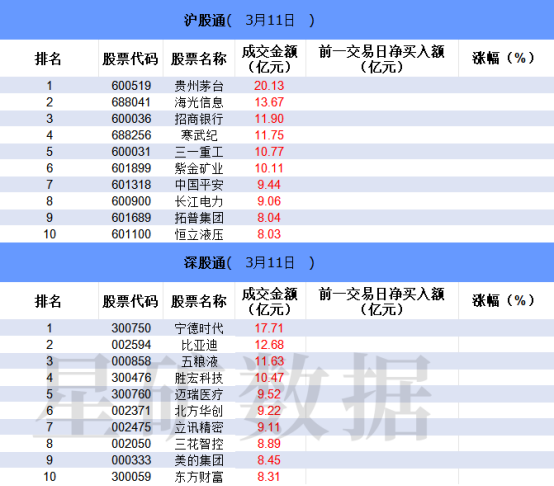 沪股通总成交927.16亿,深股通总成交1033.51亿。贵州茅台和宁德时代分别领跑沪股通和深股通。
