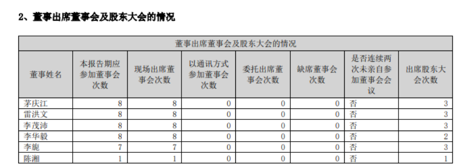 尽管董事薪酬不高,但李茂沛在浩云科技期间表现勤勉,出席了所有董事会会议。他在广州番职的收入可能远高于董事薪酬,但仍积极参与浩云科技的管理。