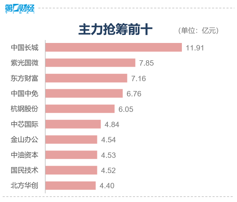 个股方面,中国长城、杭钢股份、北大荒分别获得21.27亿元、19.28亿元、15.64亿元的净流入。