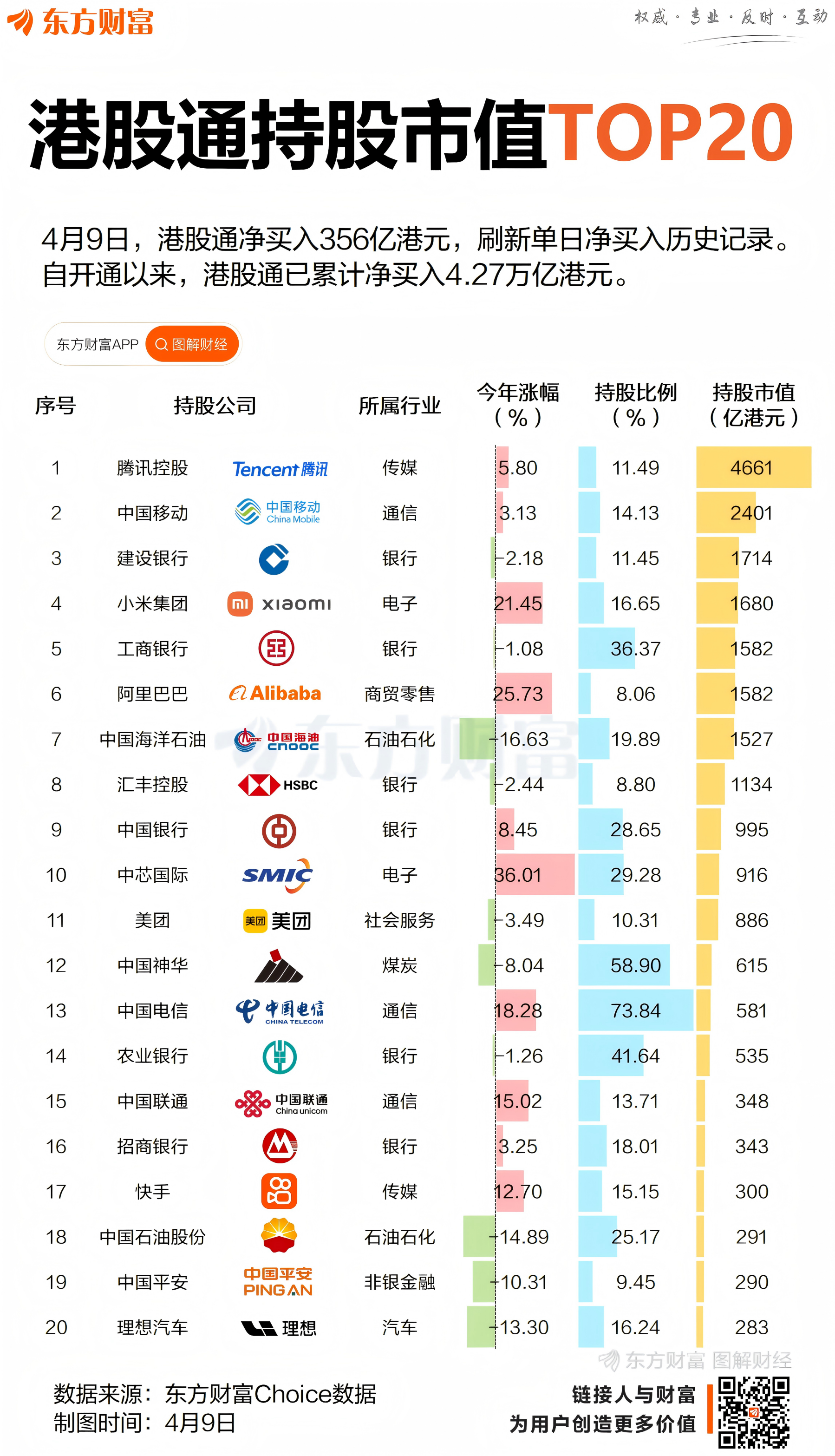4月9日,港股通净买入355.86亿港元创单日历史新高,恒生科技指数由跌转涨。内地投资者成为港股市场重要力量,南向资金加速流入,重塑港股定价权格局,或有助于港股资产价格重估。