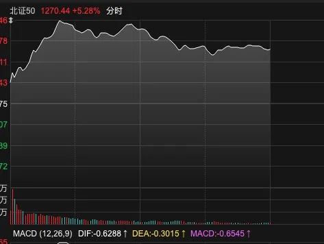 板块方面,消费电子概念股强势反弹,机器人概念股也表现活跃。影视、物流等板块涨幅居前,市场热点纷呈,无行业板块下跌。北证50指数高开后持续攀升,一度大涨逾8%,率先收复本周一失地,周二以来累计反弹约24%。截至午间收盘,该指数涨幅为5.28%,显示出市场的强劲反弹动力。
