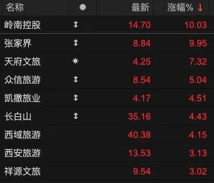 此外,旅游板块也异动拉升,张家界涨停,岭南控股、众信旅游、西安旅游等跟涨,显示出旅游市场的复苏态势。中航证券认为,政策利好和消费活力的提升将进一步提振春夏季旅游市场,助力我国旅游经济加速增长。