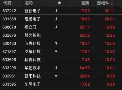 消费电子股普涨成为市场亮点之一。截至发稿,隆扬电子、福立旺涨停,蓝思科技、东尼电子等纷纷跟涨。港股消费电子股同样普涨,TCL电子涨近30%,高伟电子等表现不俗。