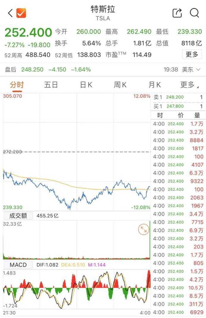 大型科技股集体下挫,特斯拉跌超7%,Meta跌逾6%,亚马逊跌超5%。芯片股方面,意法半导体、安森美半导体等均跌超10%。