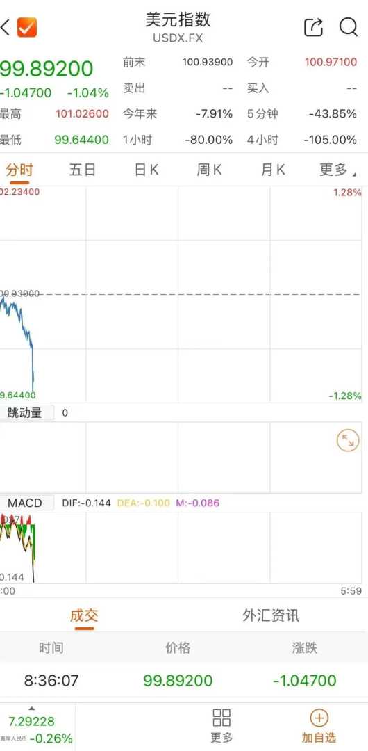 汇市方面,美元全线走弱,美元指数跌破100大关,为2023年7月以来首次。