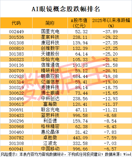 AI眼镜概念股市场表现
