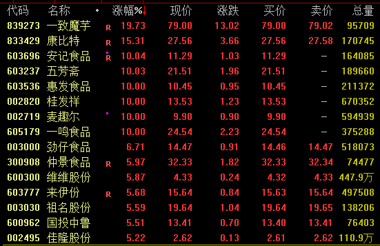 食品饮料板块再度走强,消费复苏势头明显。