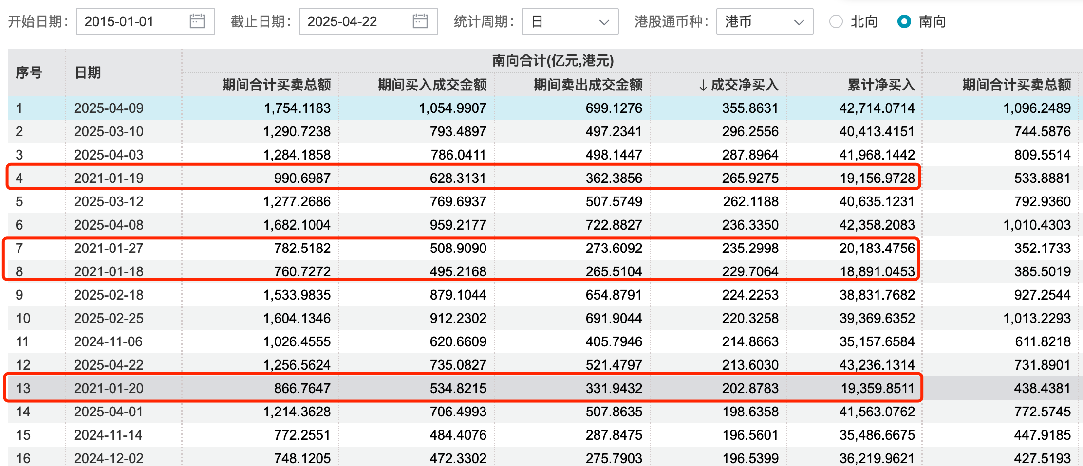 南向资金单日流入频超200亿,4月22日,南向资金成交净买入达213.6亿港元。今年以来,南向资金成交净买入金额已超6258.22亿元。近10年来,南向资金仅在2020年和2024年实现年成交净买入金额超6000亿元。今年4月9日,南向资金355.86亿港元的净买入额刷新了历史单日最高净买入纪录。
