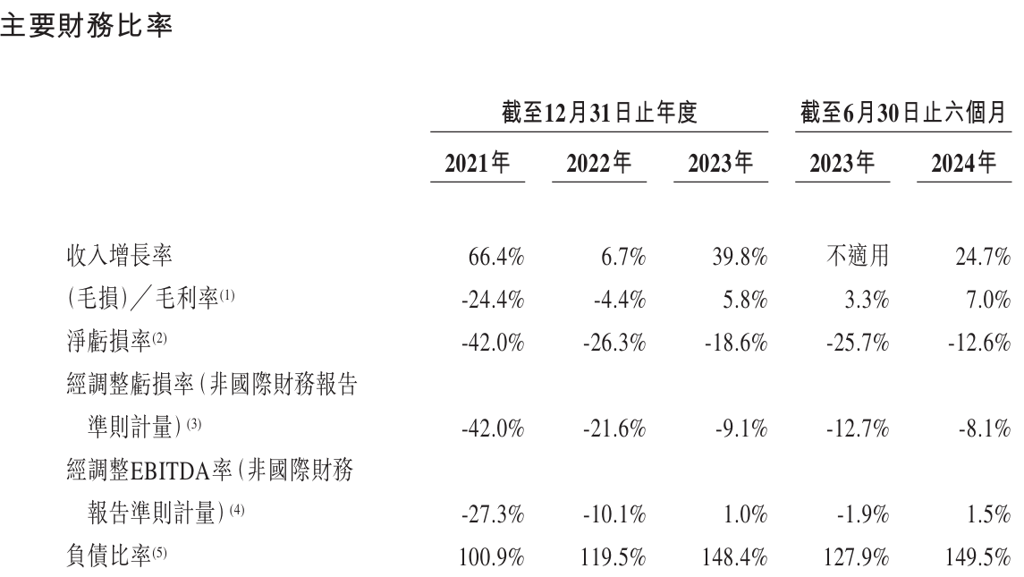《财中社》发现,毛利率的改善为曹操出行带来一丝曙光。2021年至2023年,公司毛利率从-24.4%升至5.8%,2024年上半年达到7.0%。招股书称,订单量上涨、车辆销售收入增长及成本结构优化是主要推动因素。