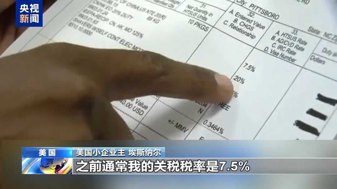 同时,高额关税下,美国的小企业主受到严重冲击。来自纽约的埃斯纳尔晒出了他的高额关税账单,显示关税费用已超过进口商品本身费用。这凸显了关税对美国小企业的影响和冲击。