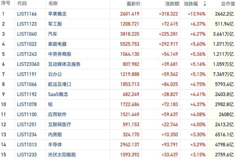 此外,大金融、中字头等权重蓝筹板块也明显发力,券商股表现尤为活跃。