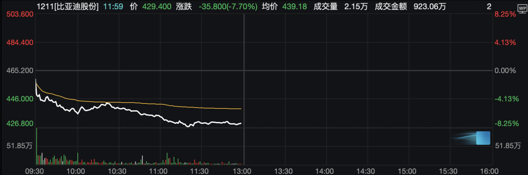 港股市场上午低位震荡,恒生指数、恒生科技指数盘中跌幅均超过1%。其中,恒生指数成份股比亚迪股份和吉利汽车盘中跌幅显著,名创优品股价更是重挫,盘中跌幅一度超过17%。