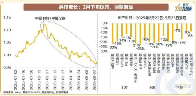 自2月下旬以来,科技成长板块表现不佳,回吐了年初涨幅。拆解AI产业链,多个细分方向回撤明显。但科技成长的交易热度已大幅下降,具有较高的性价比。历史上科技成长的调整显示,目前回调已与历史水平相当。6月科技成长或迎相对占优窗口。