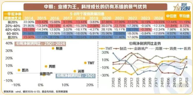 业绩仍是核心配置主线。一季报业绩好的公司,5-8月股价表现往往占优。科技板块在高基数下维持高景气,一季度归母净利润同比增速居首。